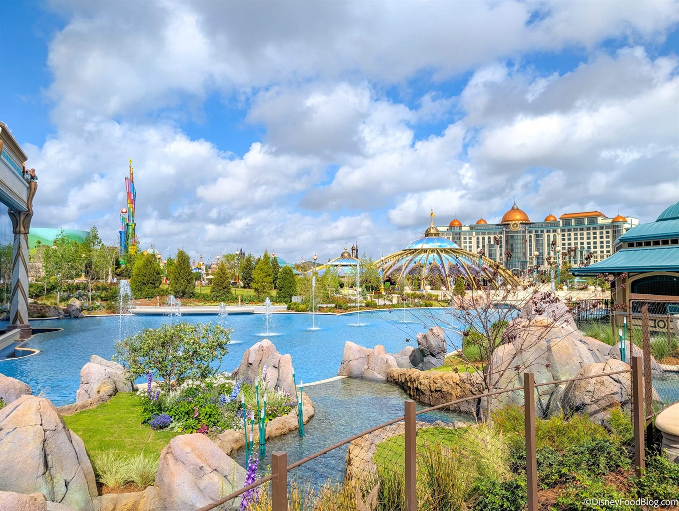 - The hub of the park, filled with gardens, fountains, and restaurants.